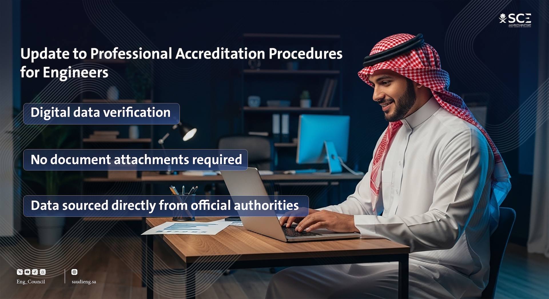 The Saudi Council of Engineers invites all non-accredited engineers, as well as those wishing to renew their professional accreditation, to take advantage of these enhanced procedures through the approved digital channels.